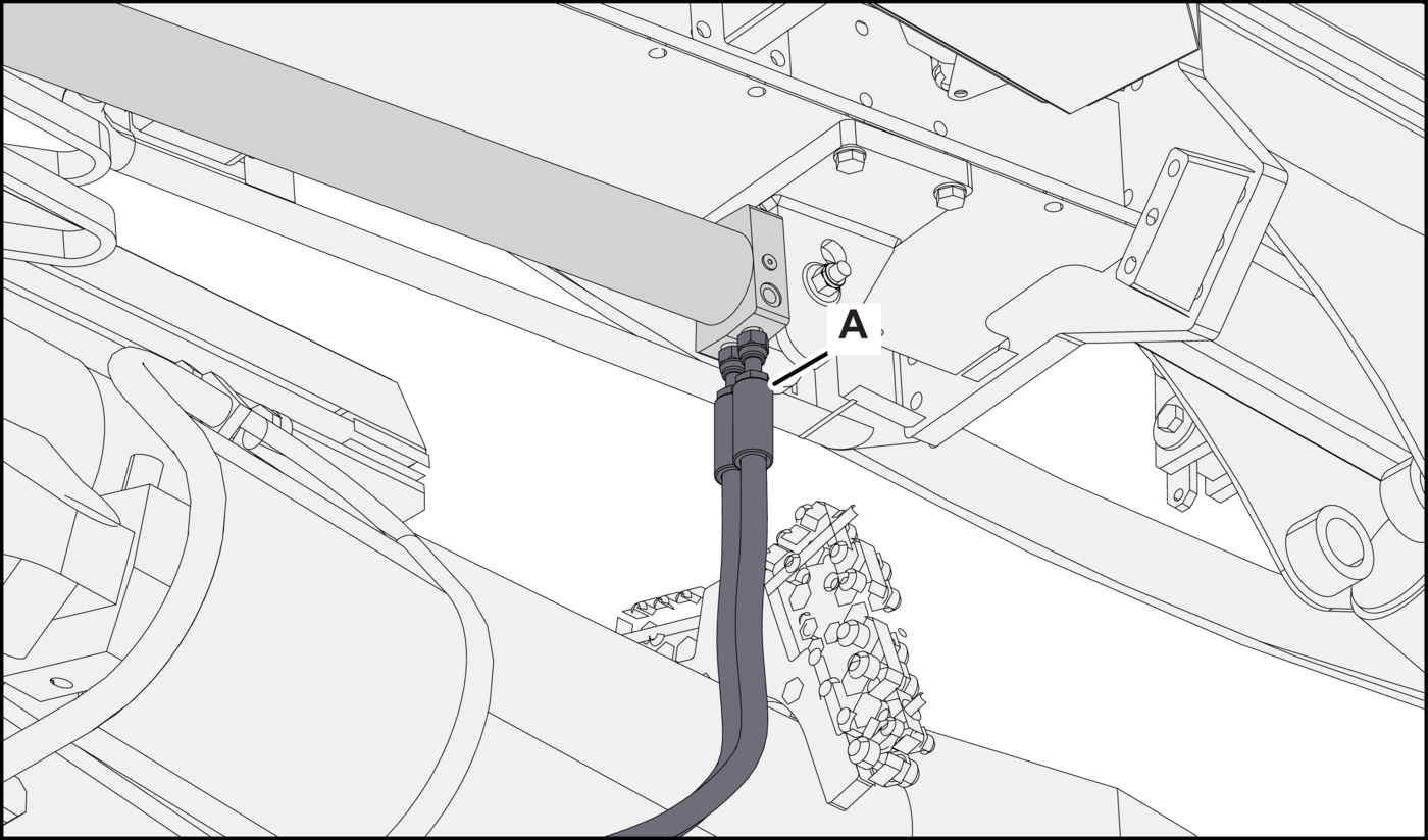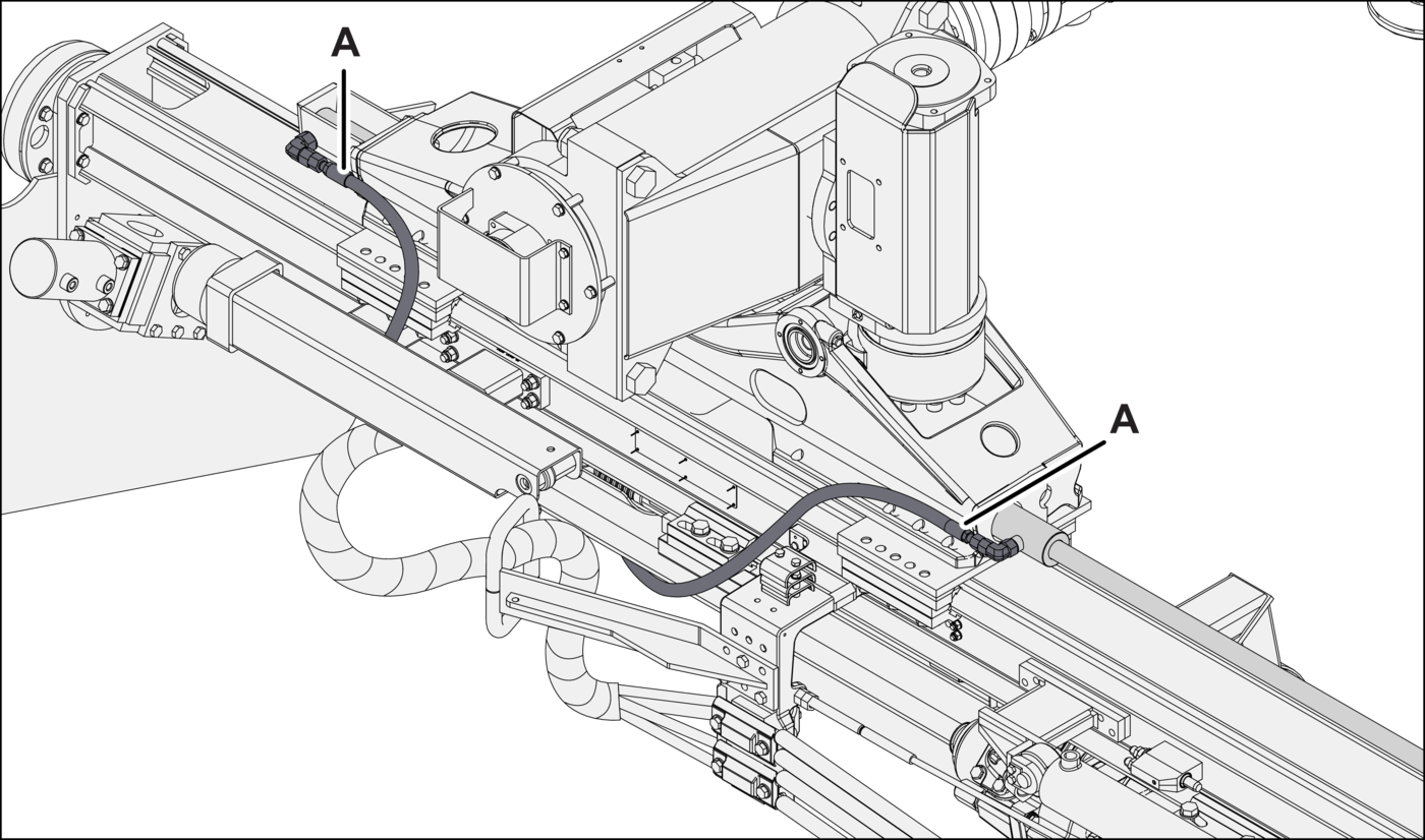 - 1.Clean, label, and disconnect the hydraulic hoses (Figures 6A, 6B, 6C, and 6D, item A) from the feed extension cylinder. Plug the hoses and cap the ports immediately.