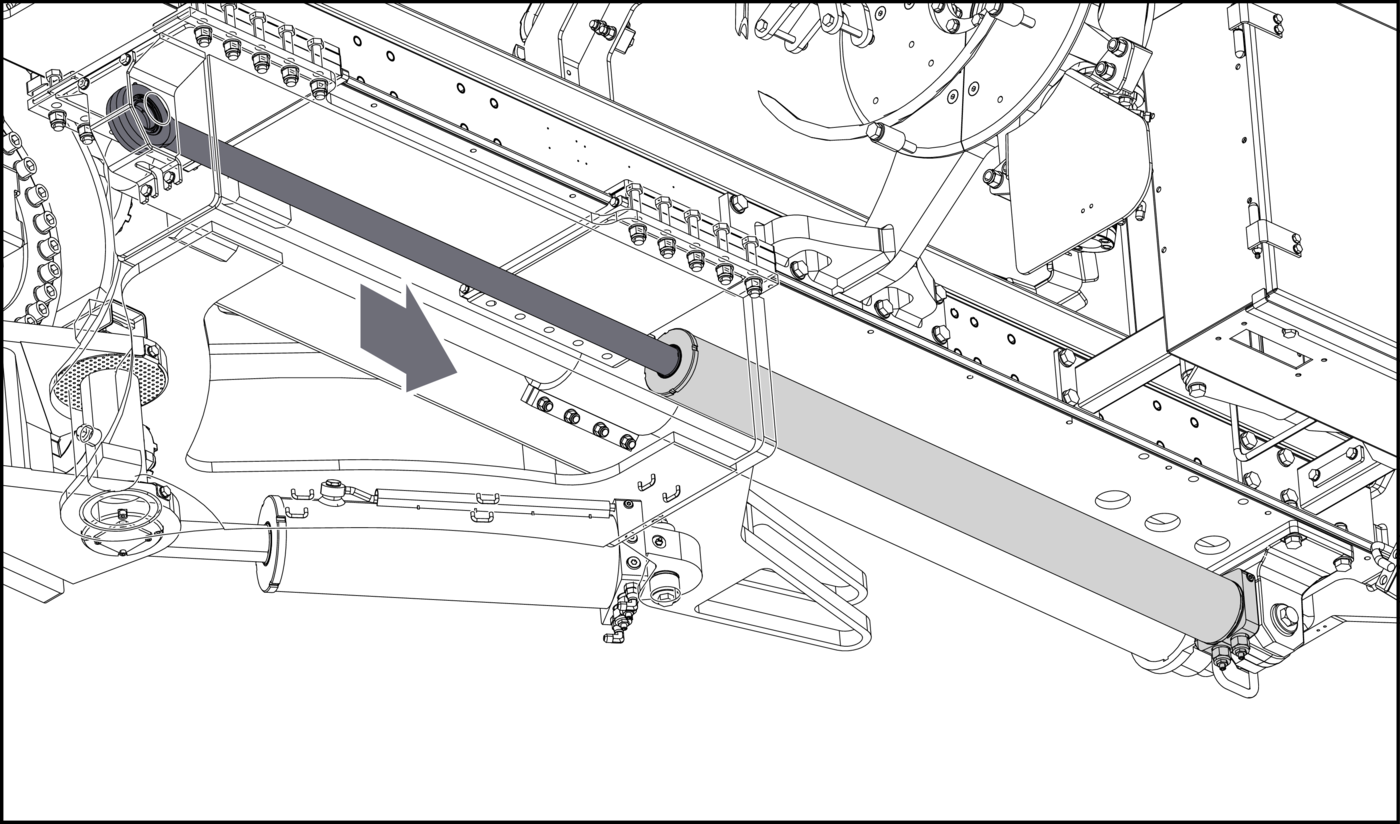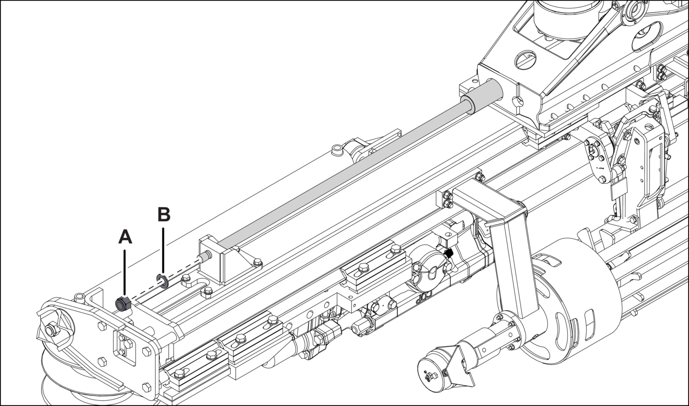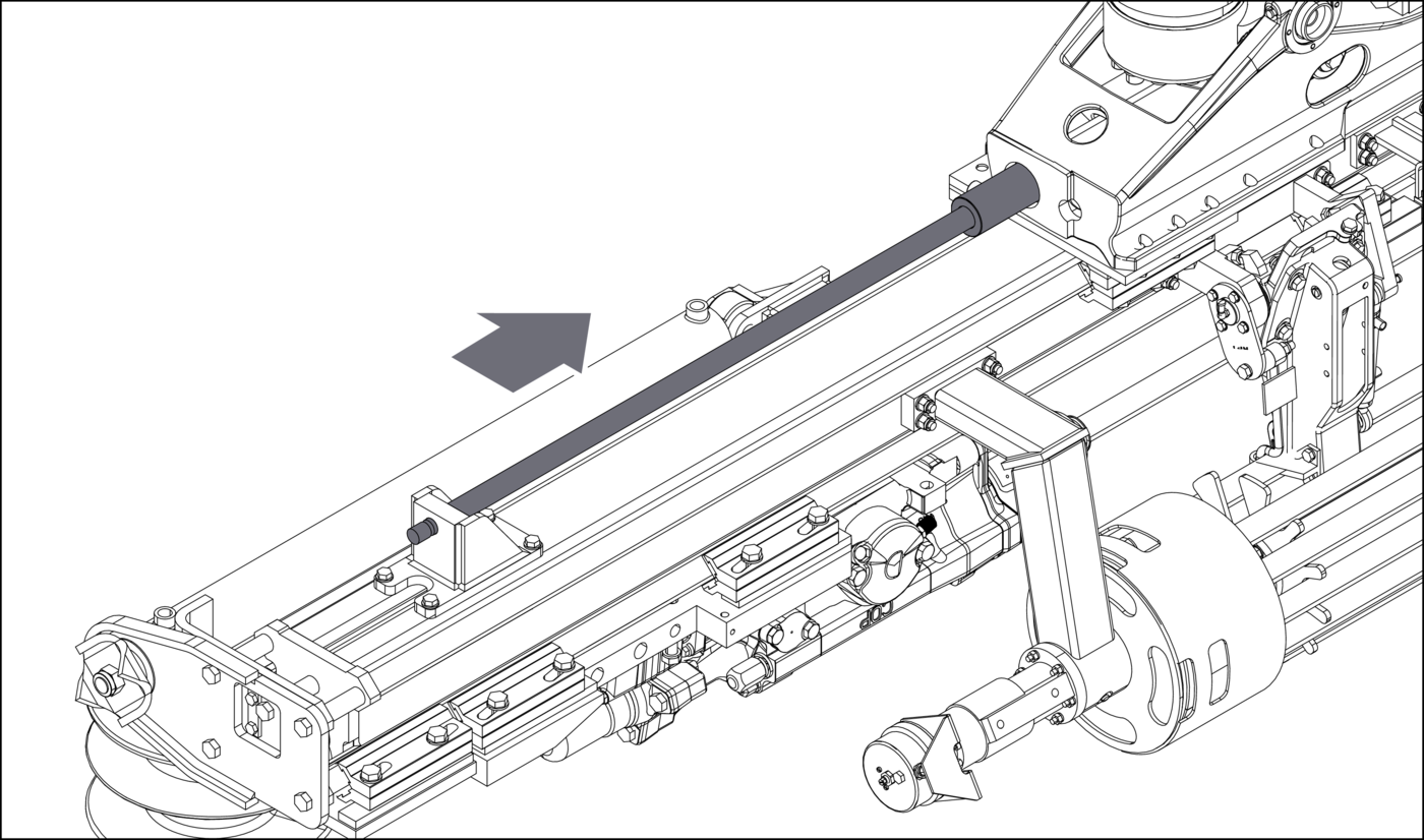 - 14.Lower the boom, to a comfortable height to access the feed extension cylinder.