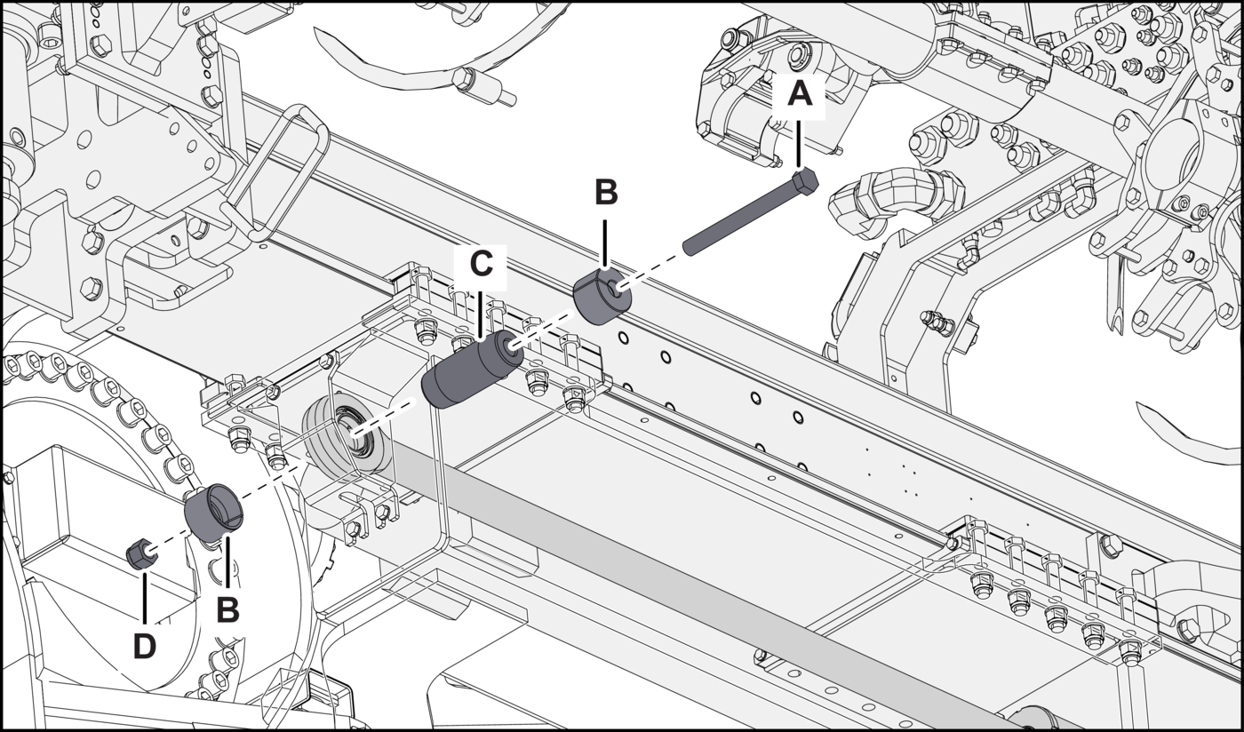 - Optional stepFor Boltec M and Cabletec E Machine: Remove the bushings (item B) from the cylinder rod-end shaft and store them in a safe location.