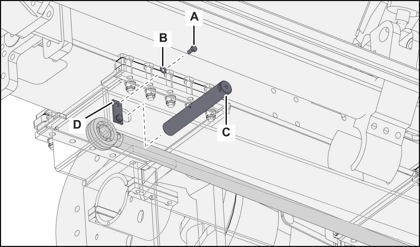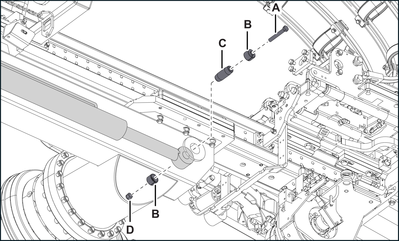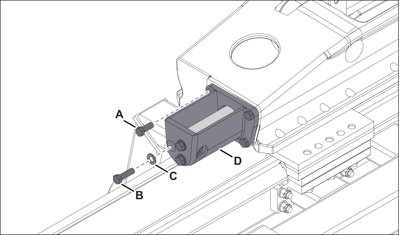 - Alternative stepFor Cabletec M machine: Remove the screws (Figure 10B, items A and B), washers (item C), and bracket (item D) from the extension cylinder. Discard the hardware.