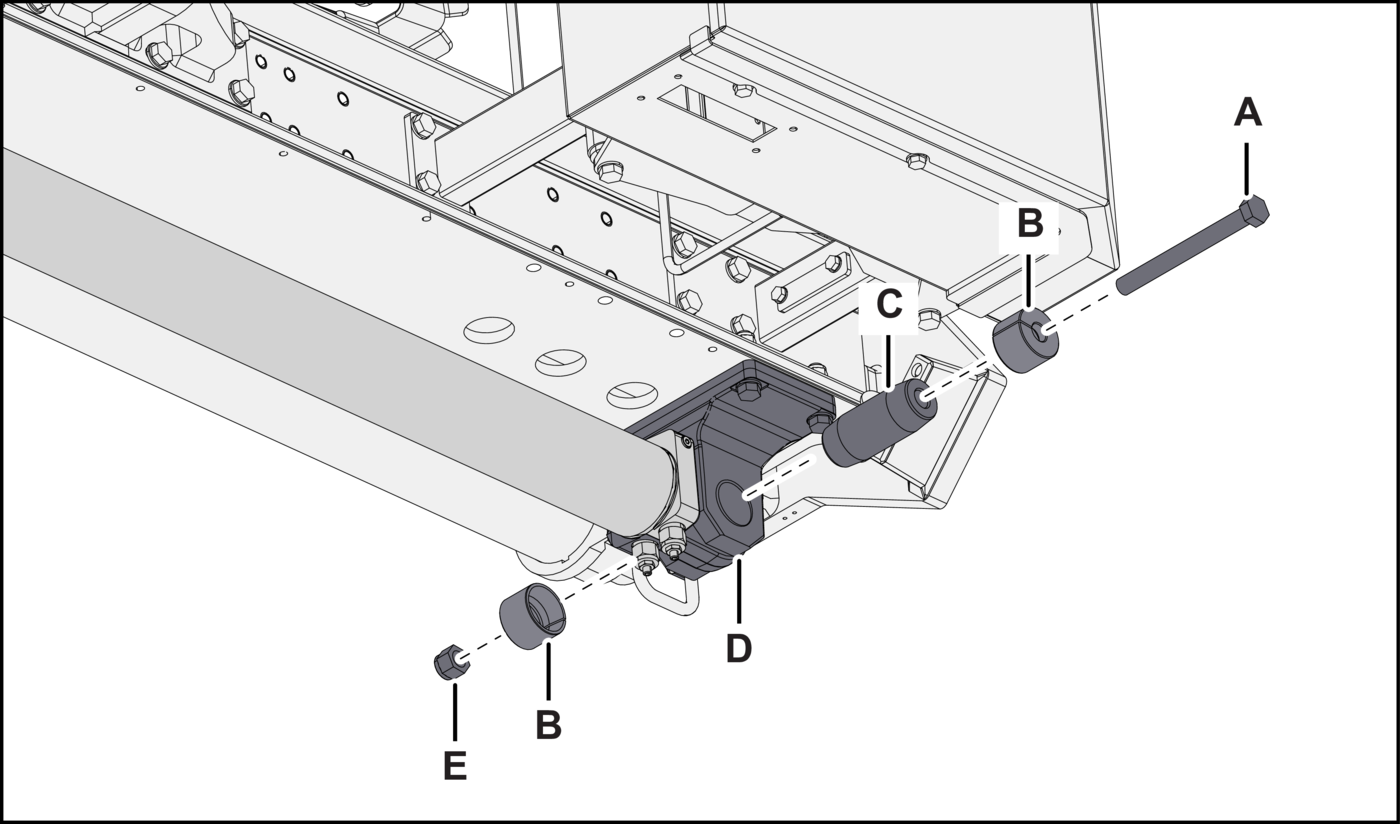 - Alternative stepFor Boltec M machine: Remove the two screws (Figure 10A, item A), shaft lock (item B), and shaft (item C) that attach the bracket (item D) to the feed extension cylinder. Discard the hardware.