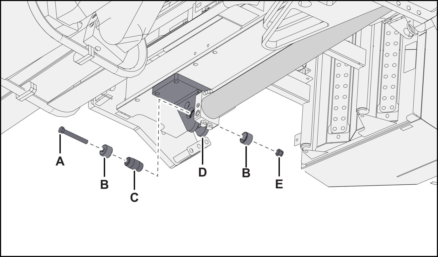 - Alternative stepFor Cabletec LC machine: Remove the screw (Figure 10D, item A) and the lock nut (item E) from the bracket (item D). Discard the hardware.