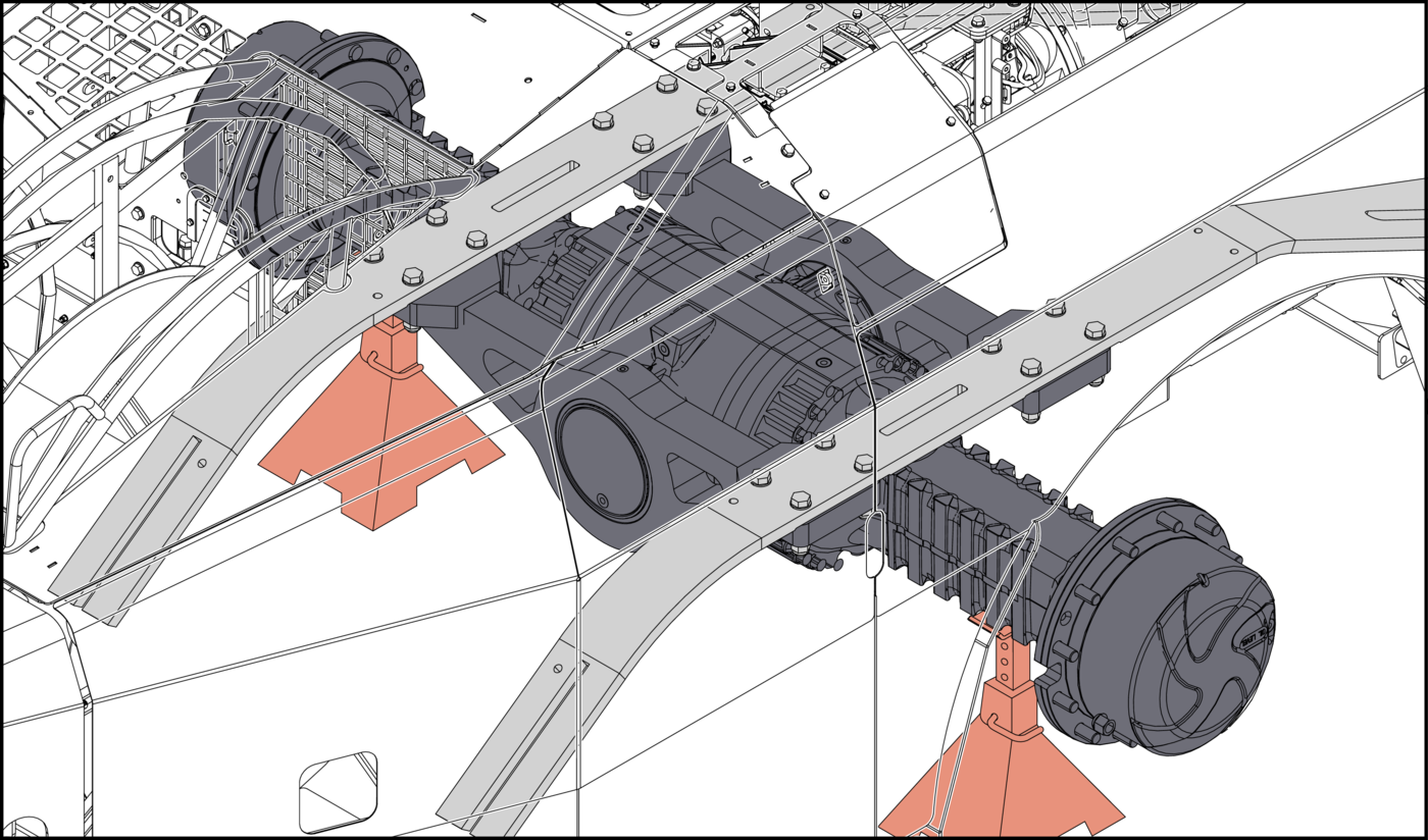 Figure 16 - 4.Remove the adjustable maintenance stands from below the rear axle.