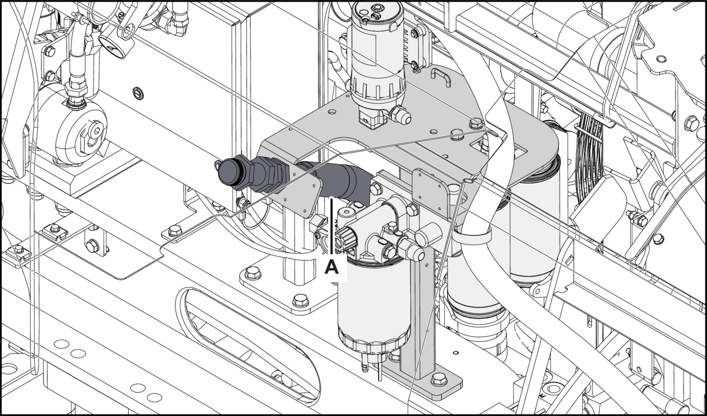 Connect the hoses (Figure 22, item A) to the fuel filters as per the labels.