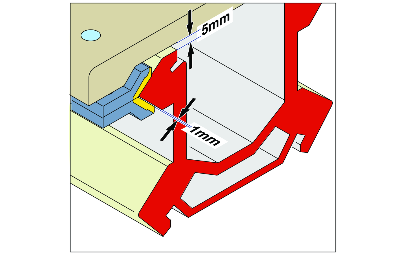- 2.Adjust the upper holders so the cradle is lying straight on the beam and is 5–7 mm (0.2-0.28 in.) above the beam.