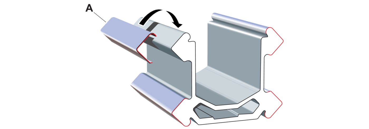Holders (D) are turned the same way as in the illustration so that the outer part of the angled grooves is facing to the rear of the beam.