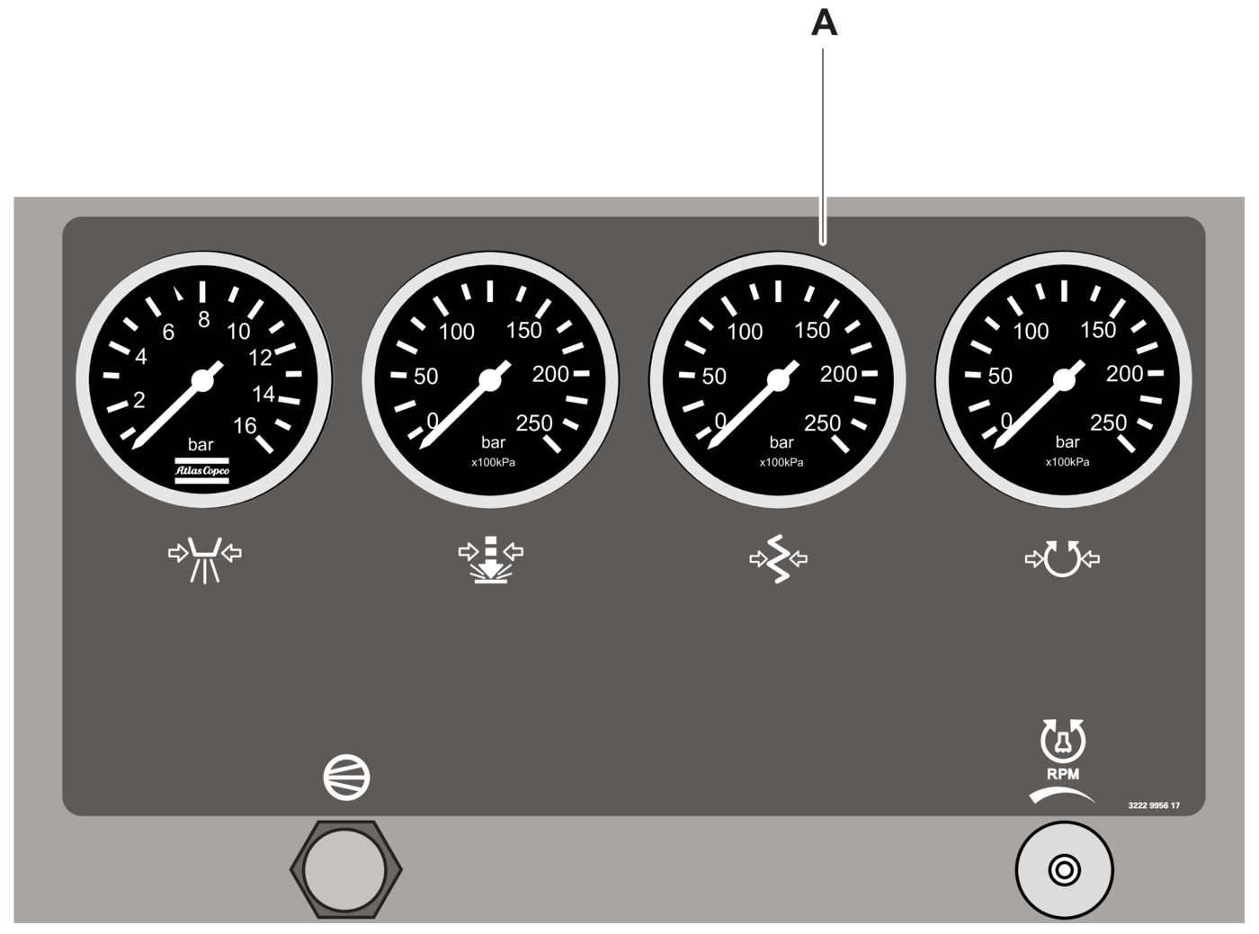 A | Compressor pressure gauge |