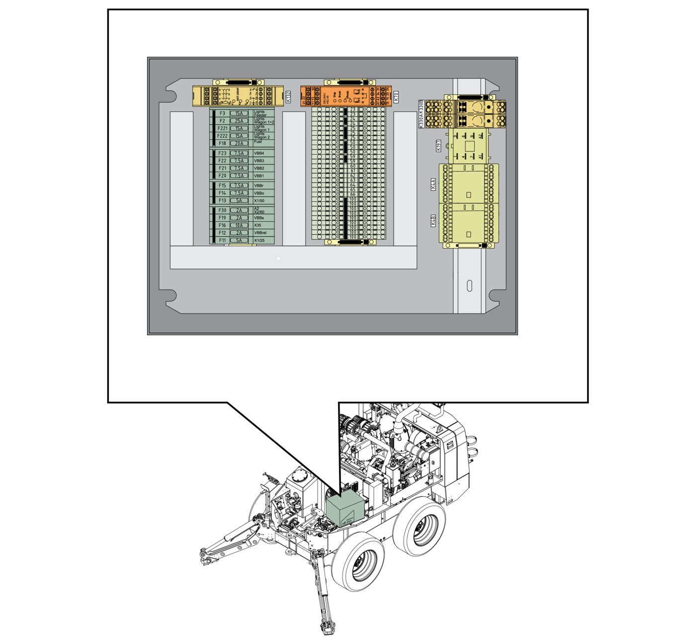 - 1.Check that the auxiliary batteries (A) have the same voltage as the chassis battery (G1).