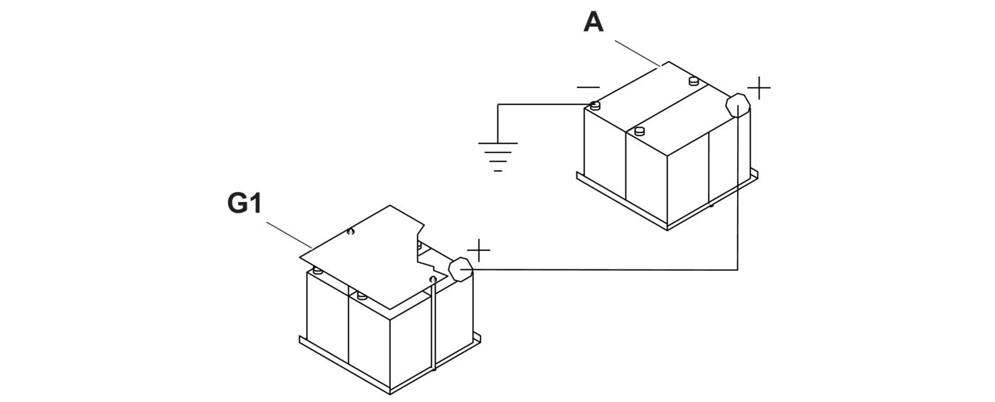 - 2.Connect the positive terminal of the auxiliary batteries (A) to the positive terminal of the chassis battery (G1).