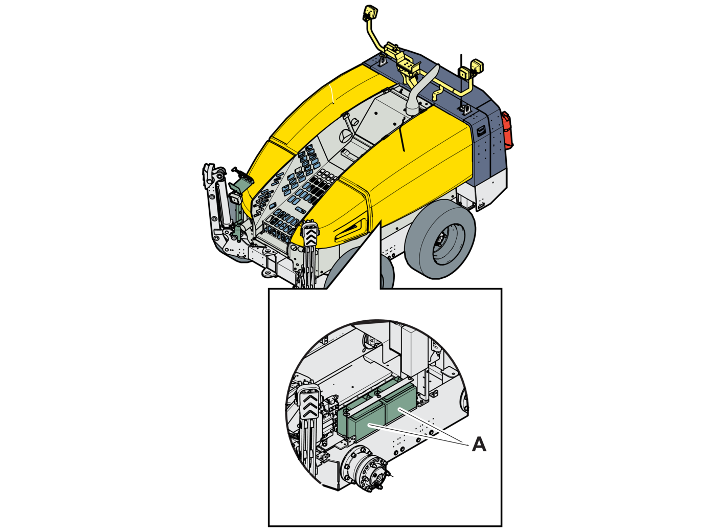 - 1.Check electrolyte level in batteries (A).