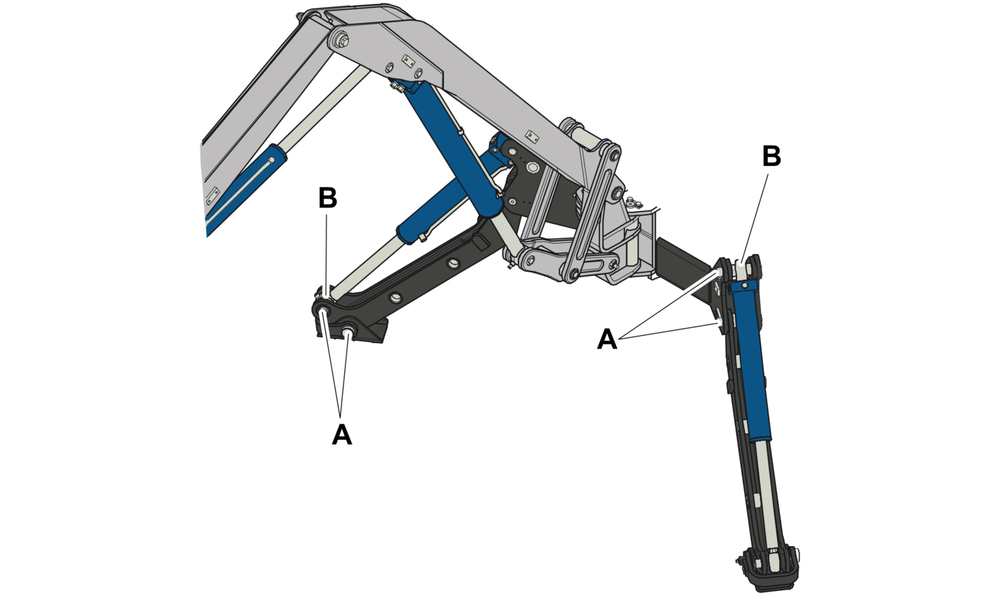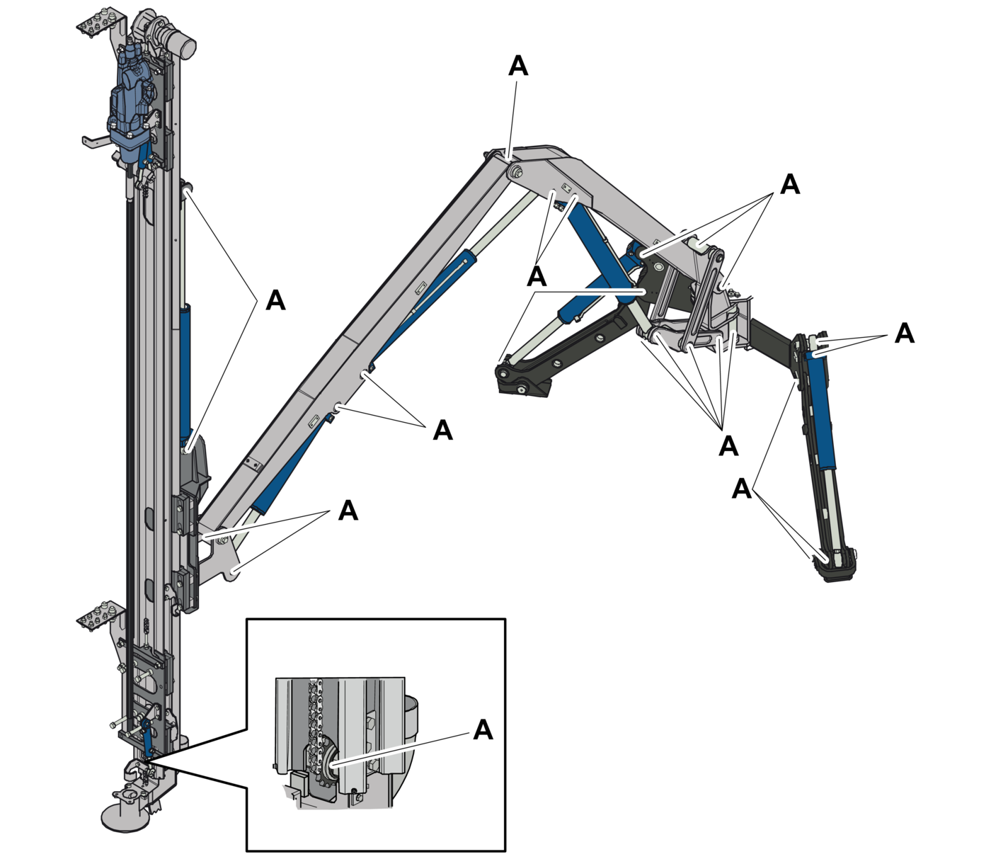- 1.Fill the 24 grease nipples on the boom and feeder and 10 grease nipples on the jacks front and rear with grease.