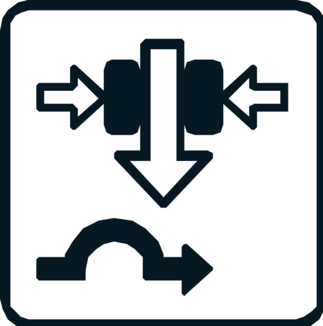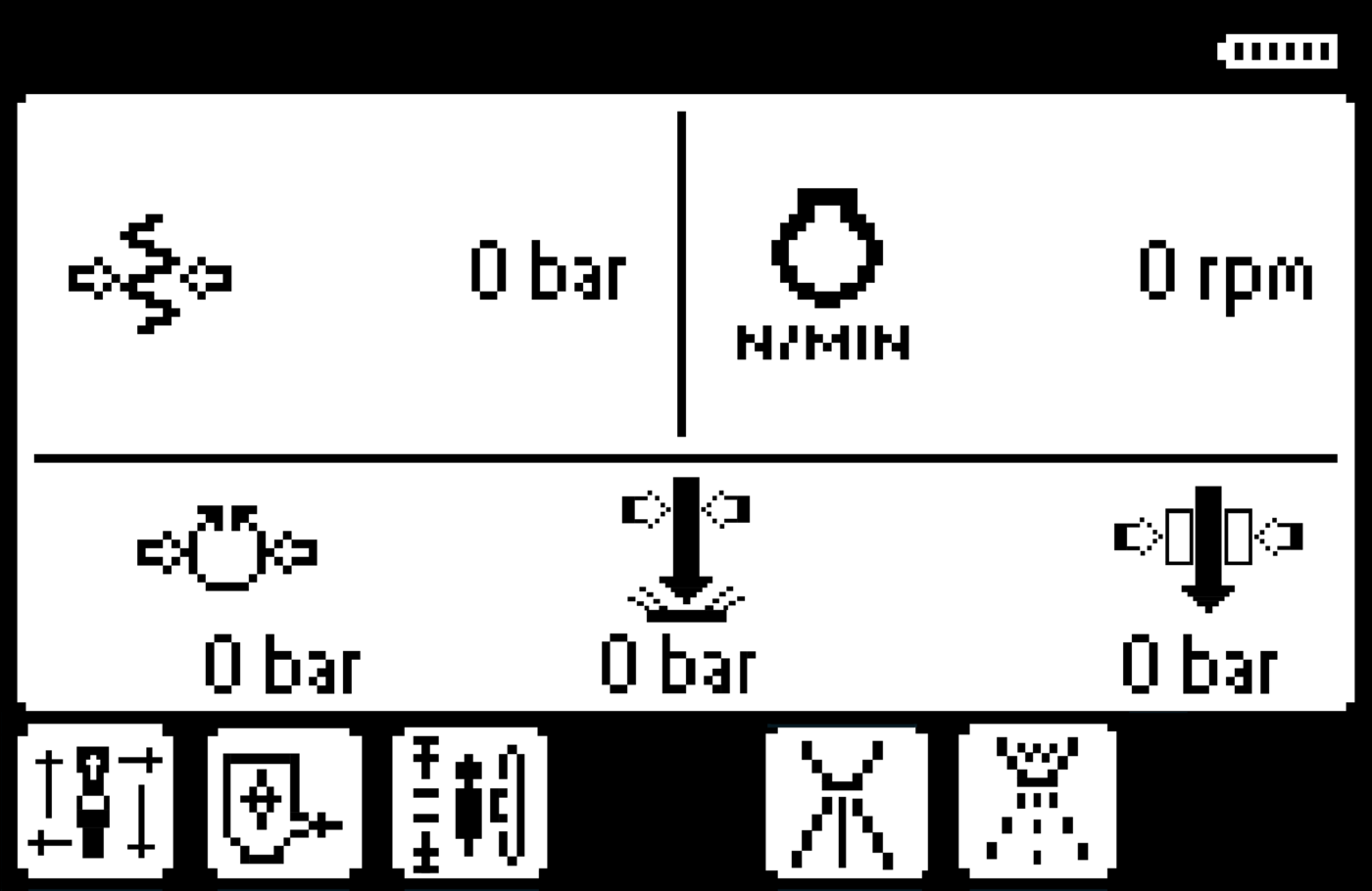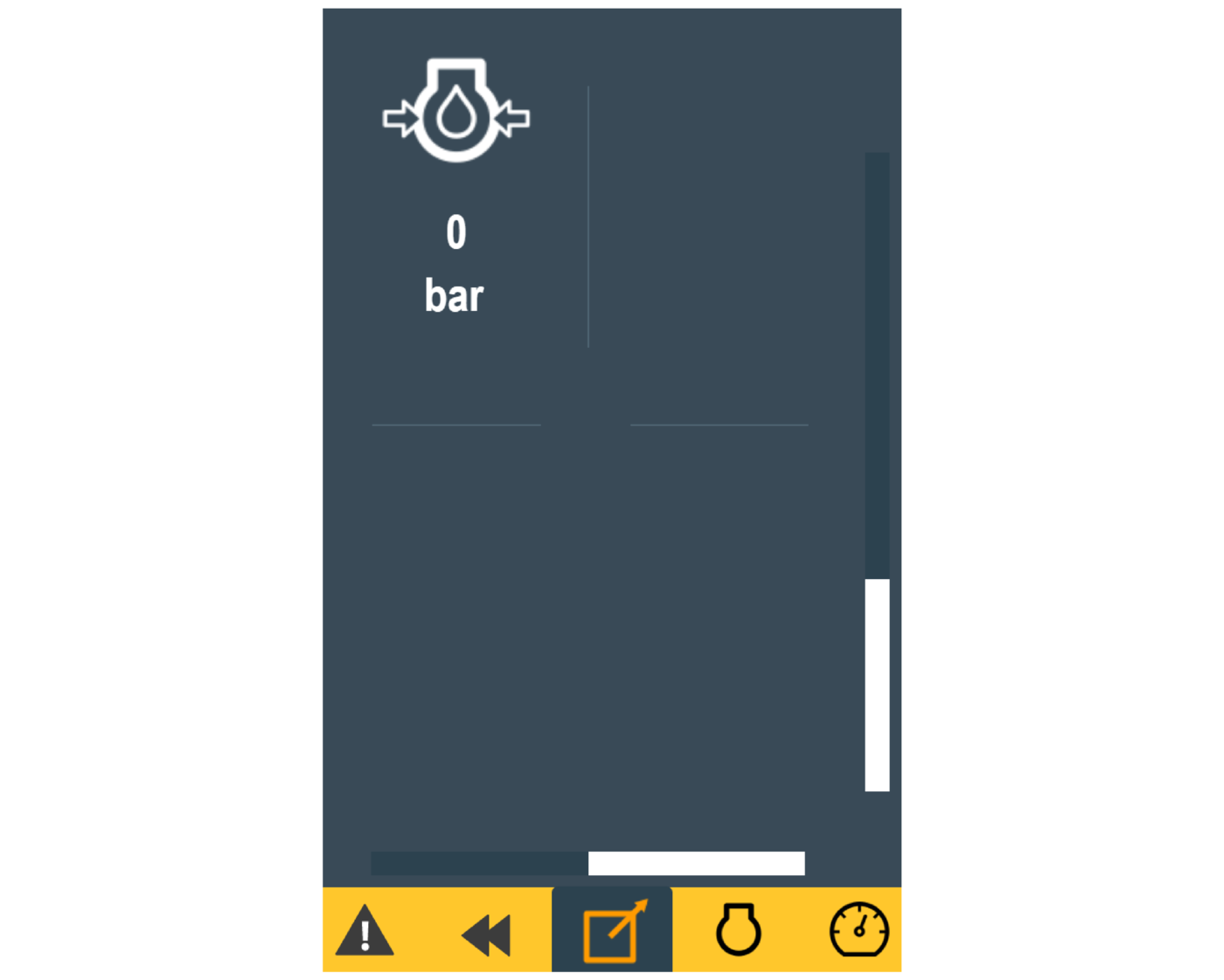 Once forward feed is activated, the feed pressure can be adjusted with the multifunction knob. Hold in the multifunction knob and turn it to set the correct value. This image is displayed when changing. Functionality must have been activated previously in Settings (RRCFP).
