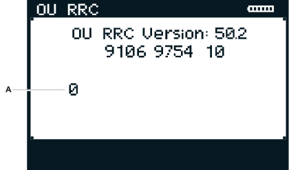 The following screen is supposed to be shown on the remote control during start-up if the remote control is working. The figure 0 (A) gives an indication that there is no error message and the remote control works normally. If 0 has changed to another figure, then the Epiroc service organization must be informed for troubleshooting.