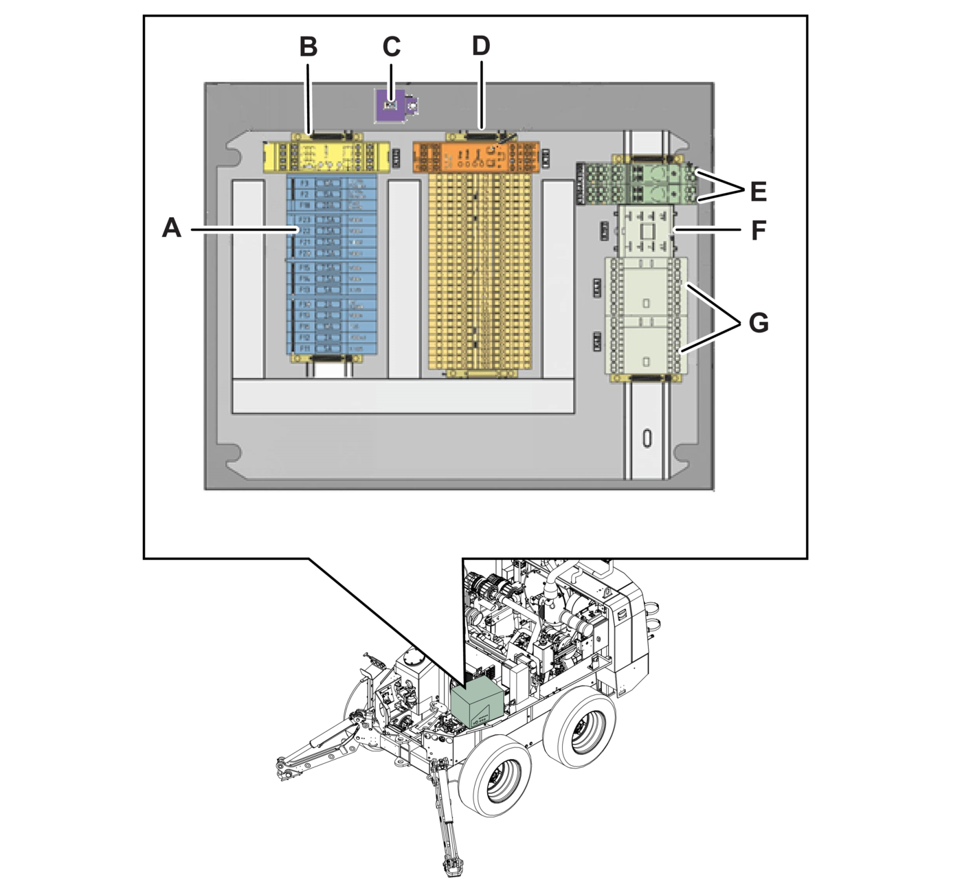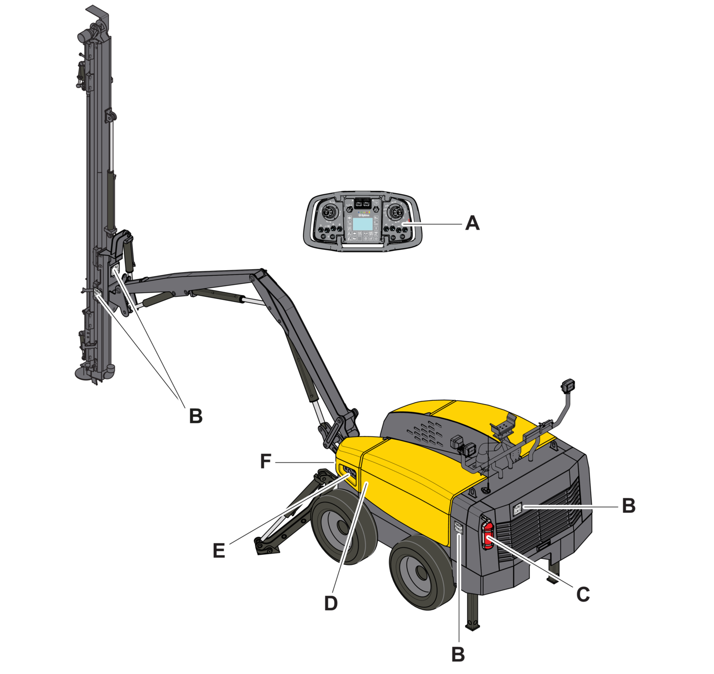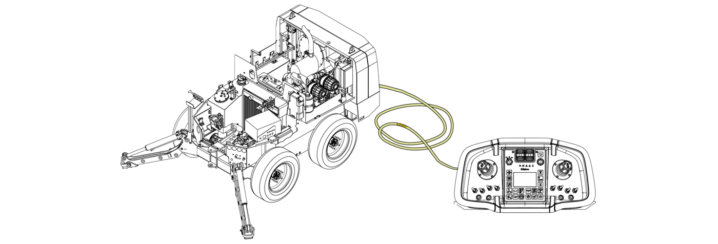 If the communication between the machine and the remote control ceases to work or if the remote control is not permitted by local regulations then a cable can be connected for operating the machine. The cable can also be used for the remote control when its battery is discharged.