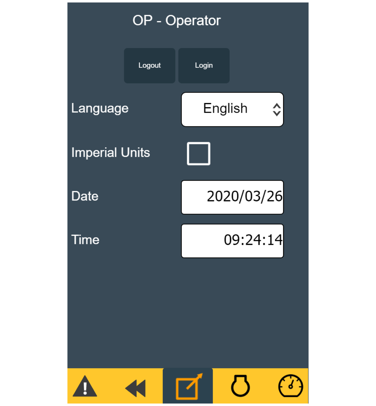 Imperial Units: Setting of which unit in the operator panel is working with.