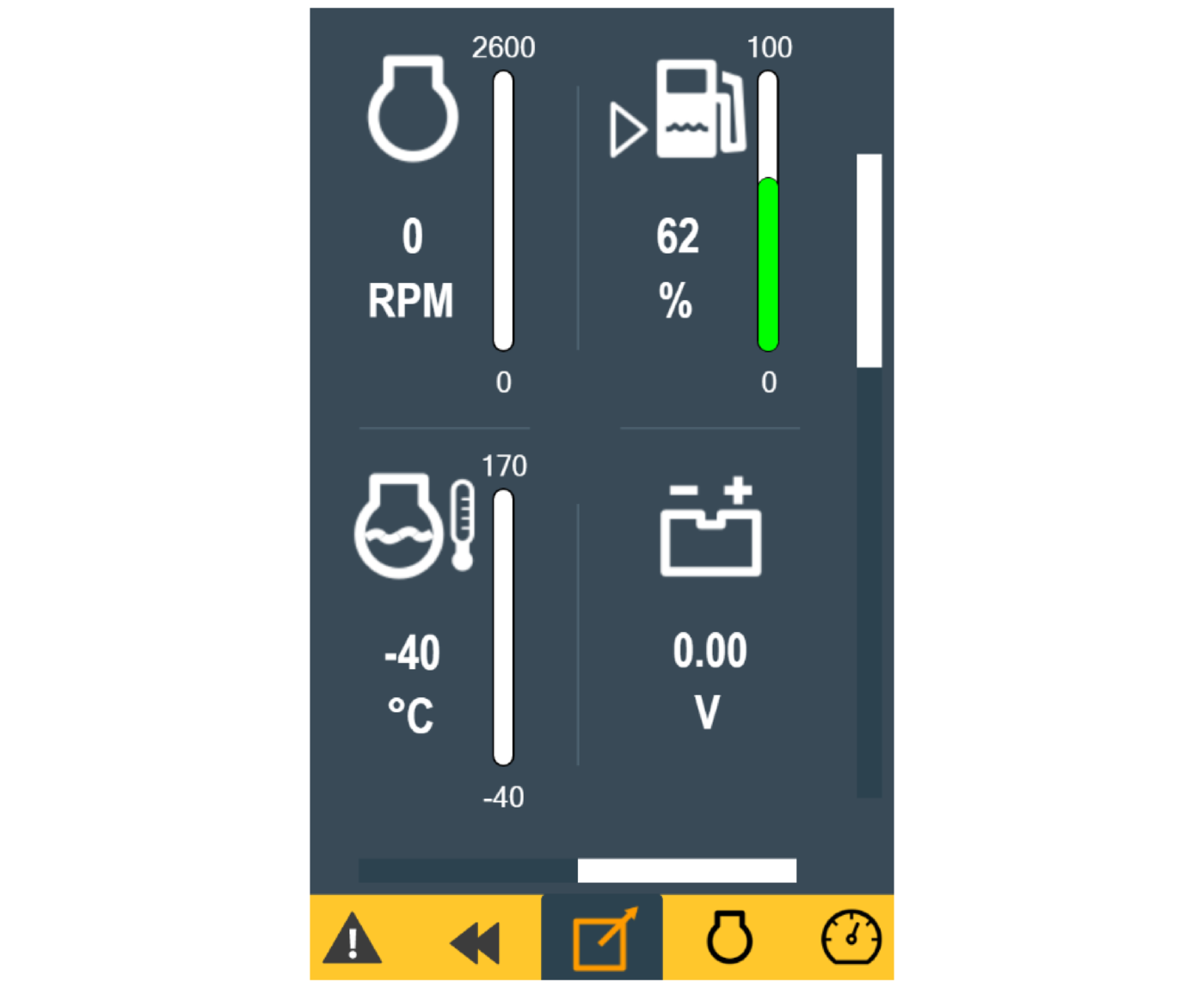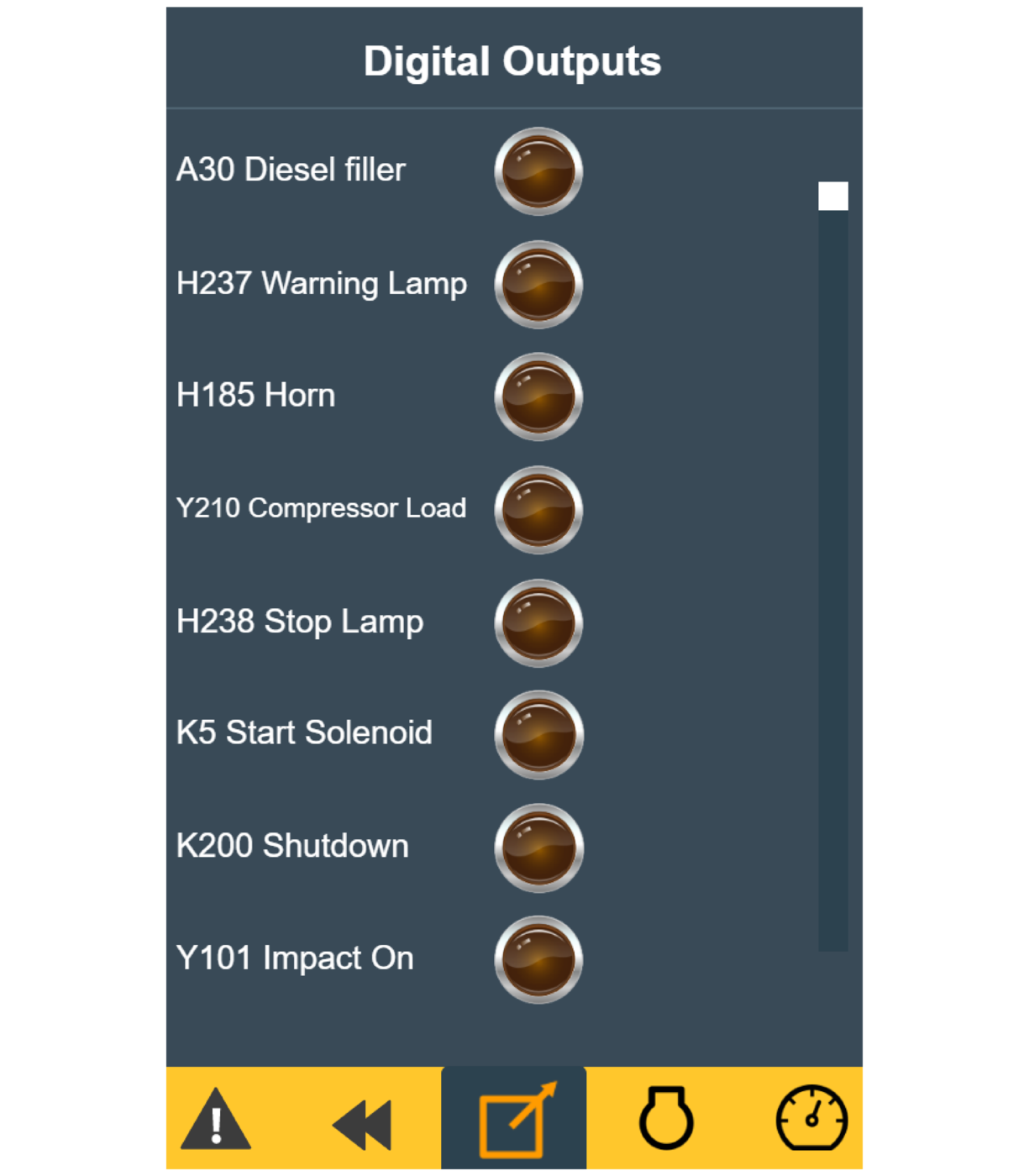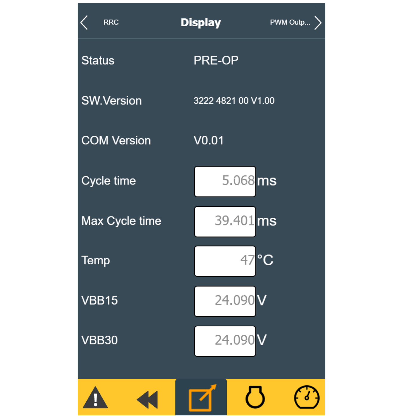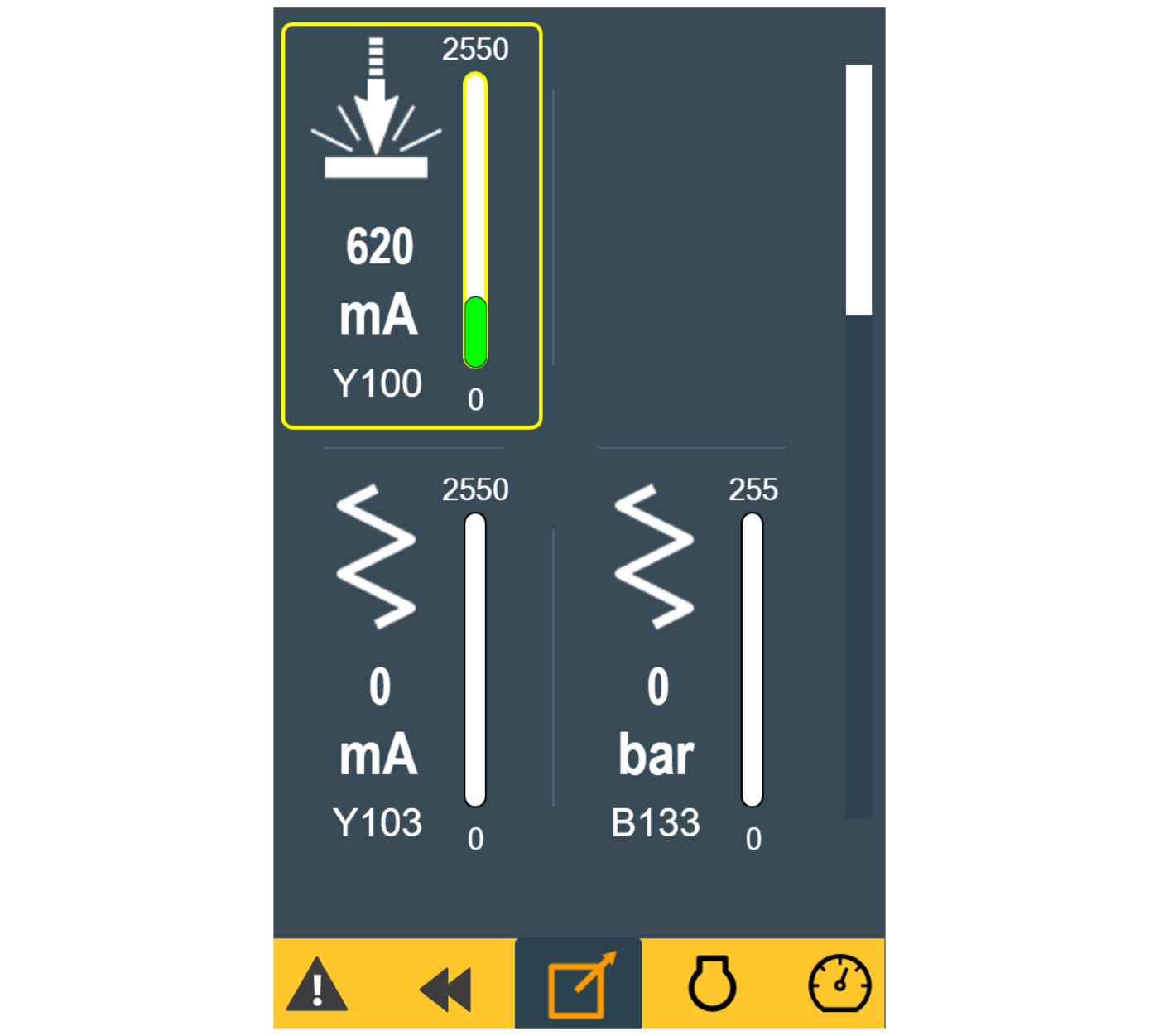 Under PWM Outputs menu, user can read Actual and Desired valve actuation. If a fault is detected in the valve in question, it is indicated with the red box around the actual value and is also shown in the Error messages menu.
