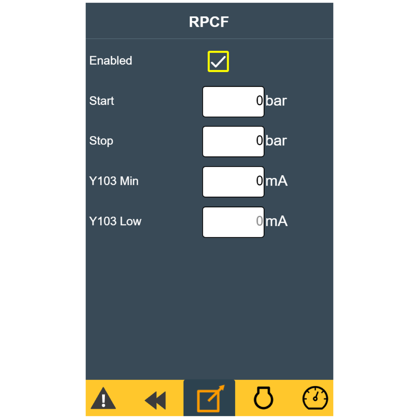 Under RPCF (Rotation Pressure Control Feed) menu, the following settings can be made: