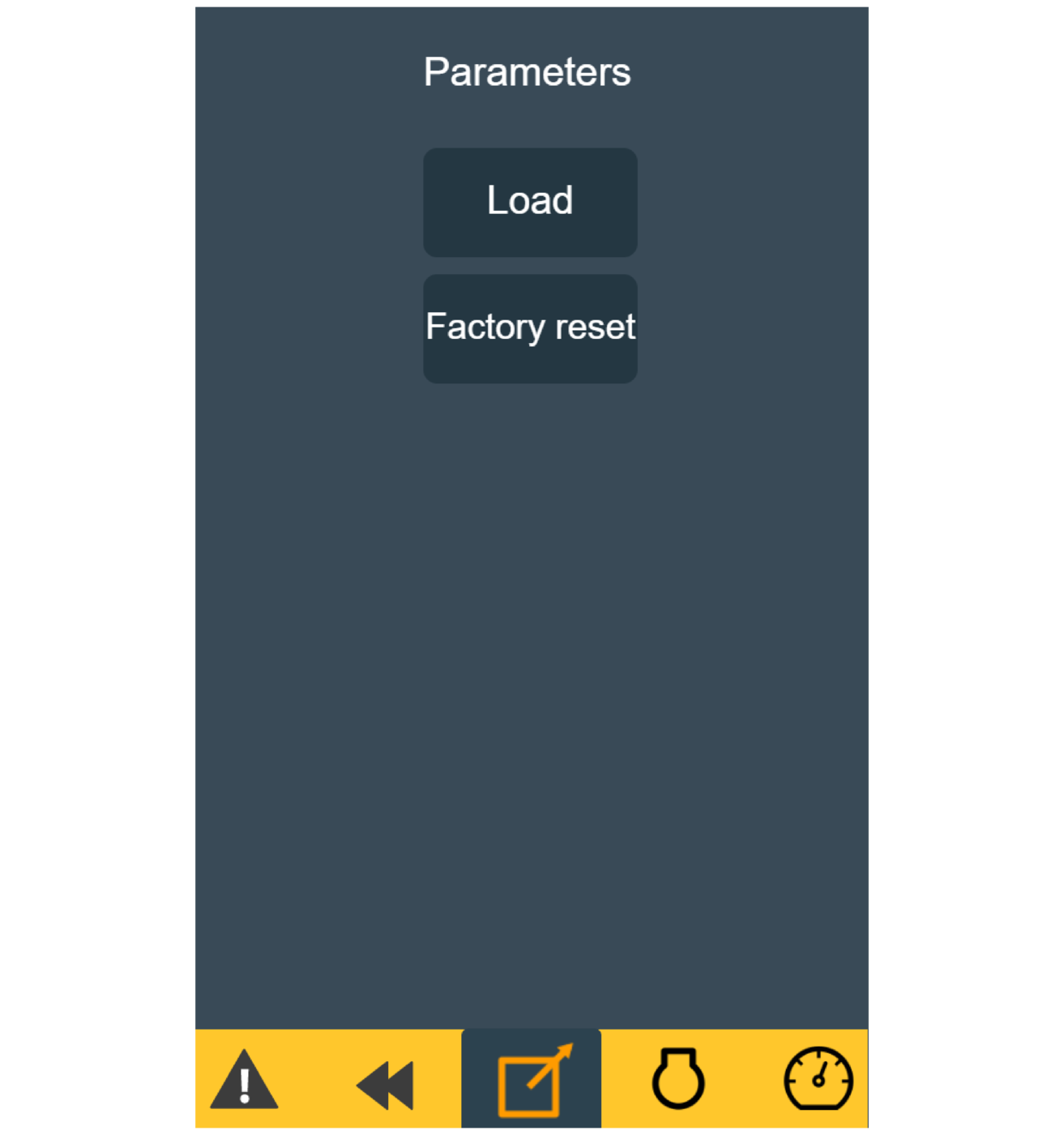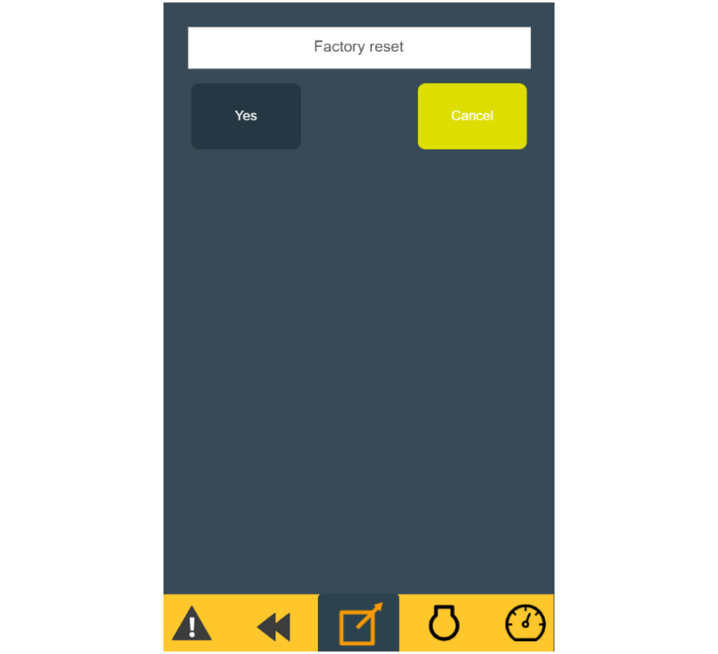 In the Factory reset menu, the operator can choose to reset the settings of the parameters to the ones that were configured from the factory.
