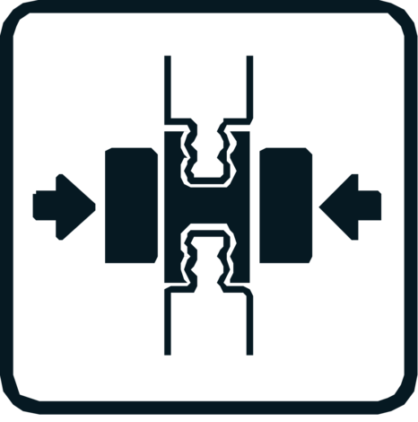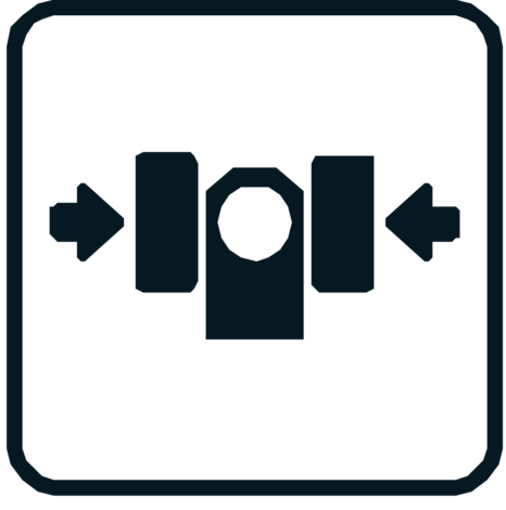 The white indication in the center of the symbol moves up or down when testing circuit breakers, and indicates correct function.