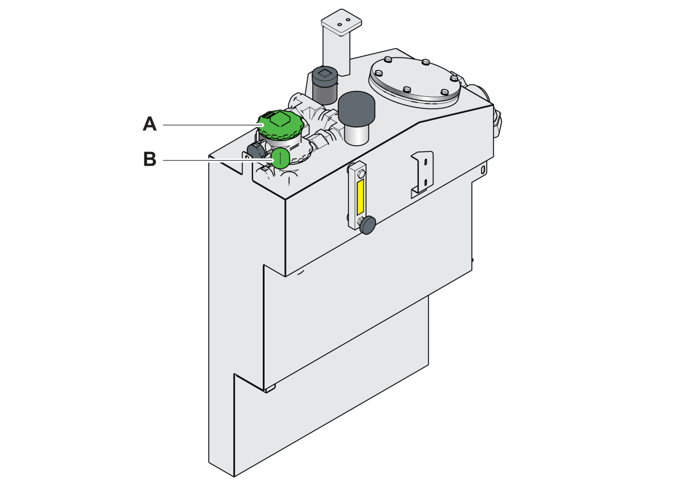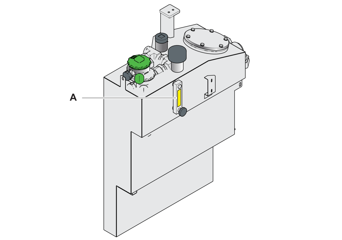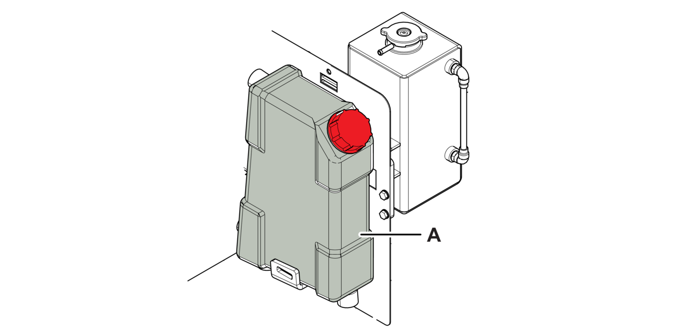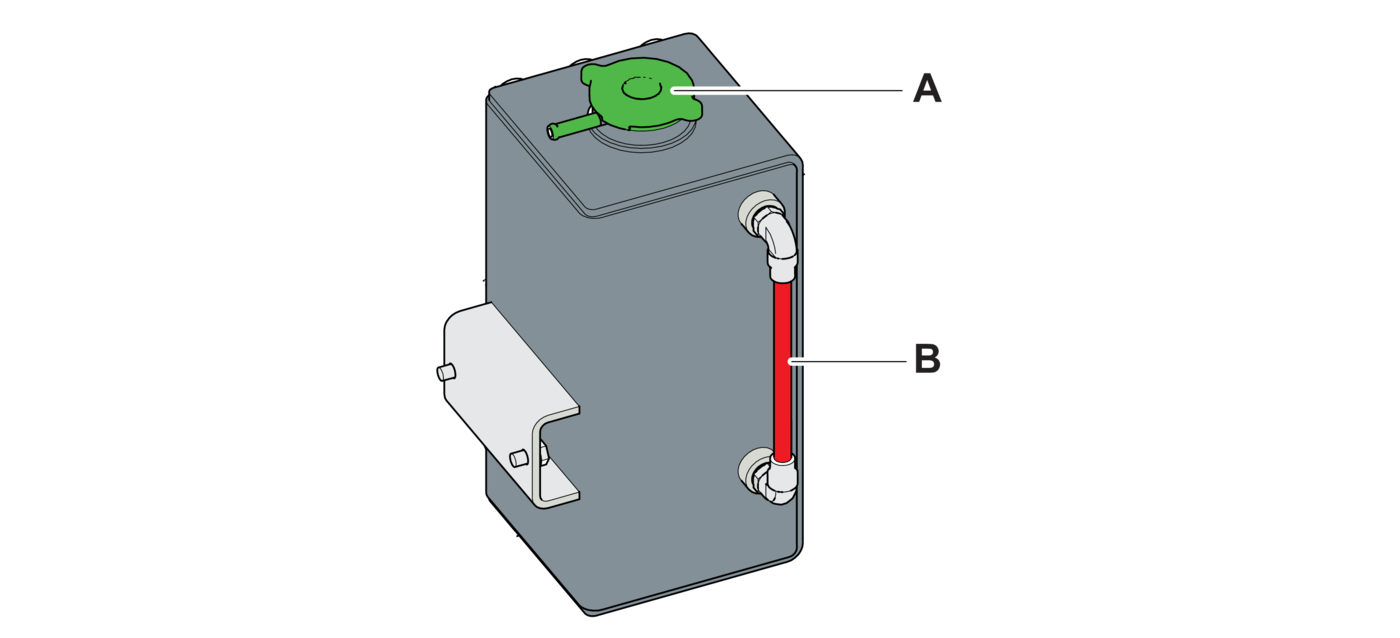- 1.Check the tank (A) and connections for signs of leakage.