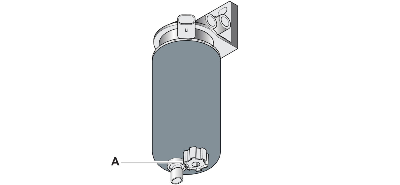 - 1.Drain off water from the fuel filter or water separator (A).
