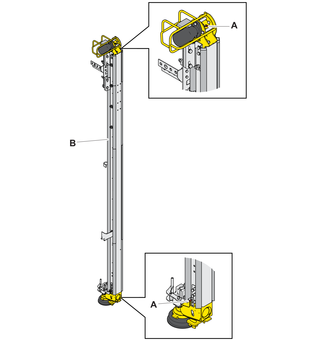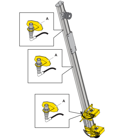 - 1.Check that the cradle is level with each limit sensor (A) as it stops.