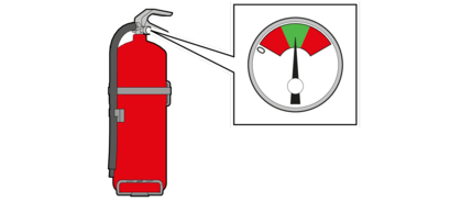 - 1.Check that the indicator is in the green zone. Replace the fire extinguisher if the indicator is in the red zone.