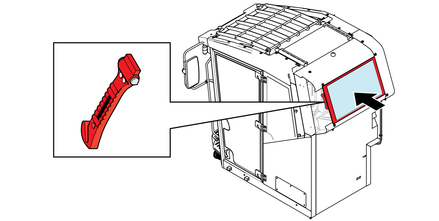 The machine is equipped with designated locations for the fire extinguishers. It is important to put only portable fire extinguishers that are approved and in accordance with local laws and regulations at the designated locations. For example, in the EU, the fire extinguishers must be approved according to the European standard EN 3. It is preferable to equip the machine with a fire extinguisher of a high efficiency class. For example, 43A 233B C or higher. The efficiency class is a measurement of how large fire that can be extinguished. 43A 233B C means that the fire extinguisher has a capacity to extinguish a class A fire of size 43, a class B fire of size 233, or a class C fire. The higher the number of the efficiency class, the larger the fire can be extinguished.