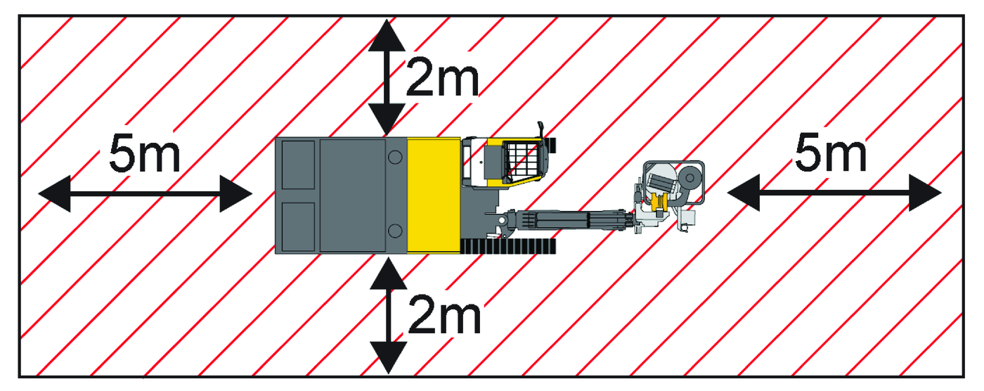Hazard Zone Surrounding a Remote Machine when Drilling