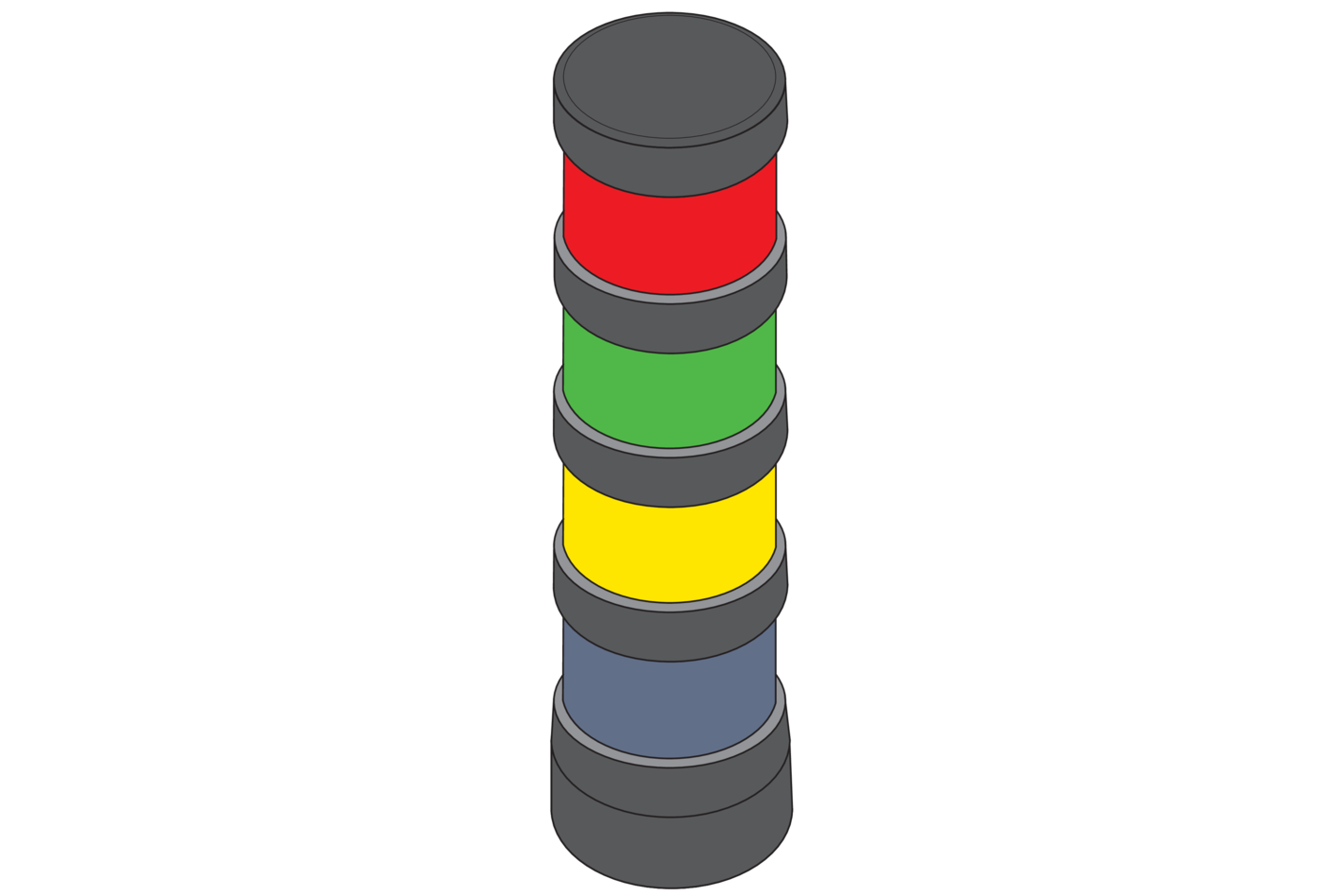 Each color is allocated a different operating status for when it lights up. The operating status for the lights is set in the software. During an emergency stop, only the red light is on.