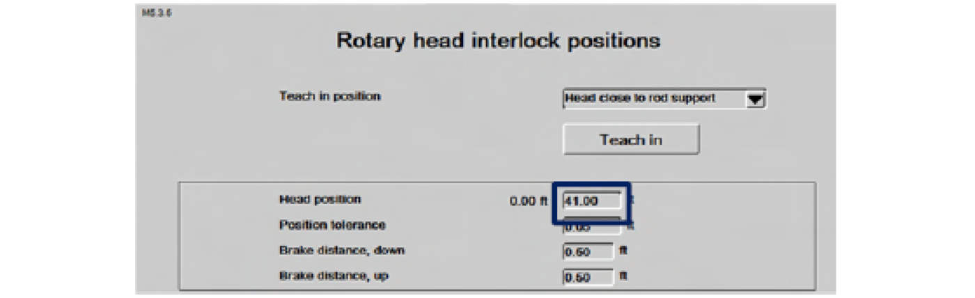 - 22.Move the rotary head 11 meters (35 feet) to a point above the “Head close to pipe support” interlock position. Here, it is 13 meters (41 feet) (Figure 23).