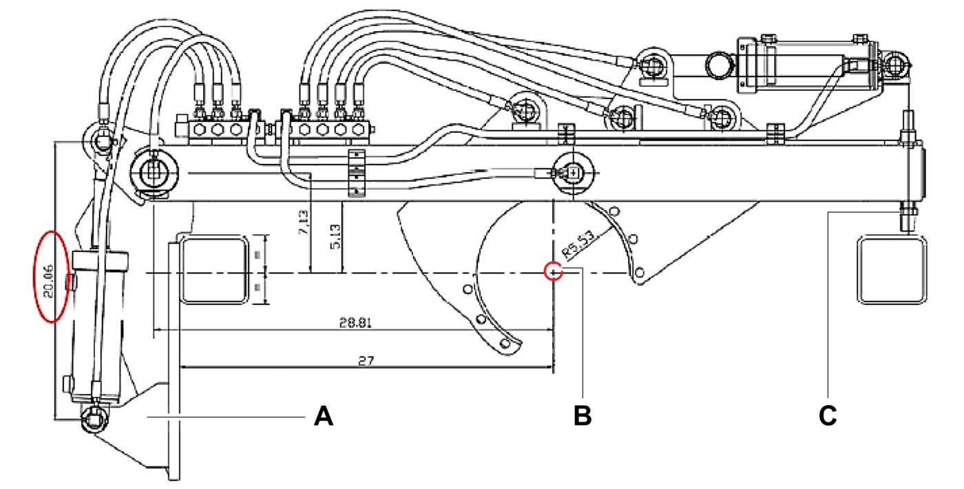 - 4.Lift the pipe support arm into position. Insert the new pivot pin and swing cylinder pin.