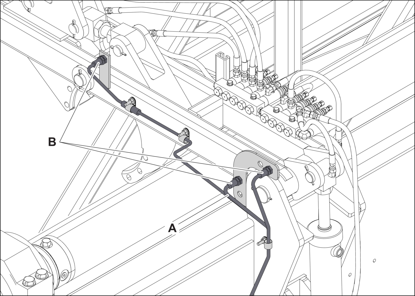 - 5.Connect the grease hoses and the hydraulic hoses to the pipe support.