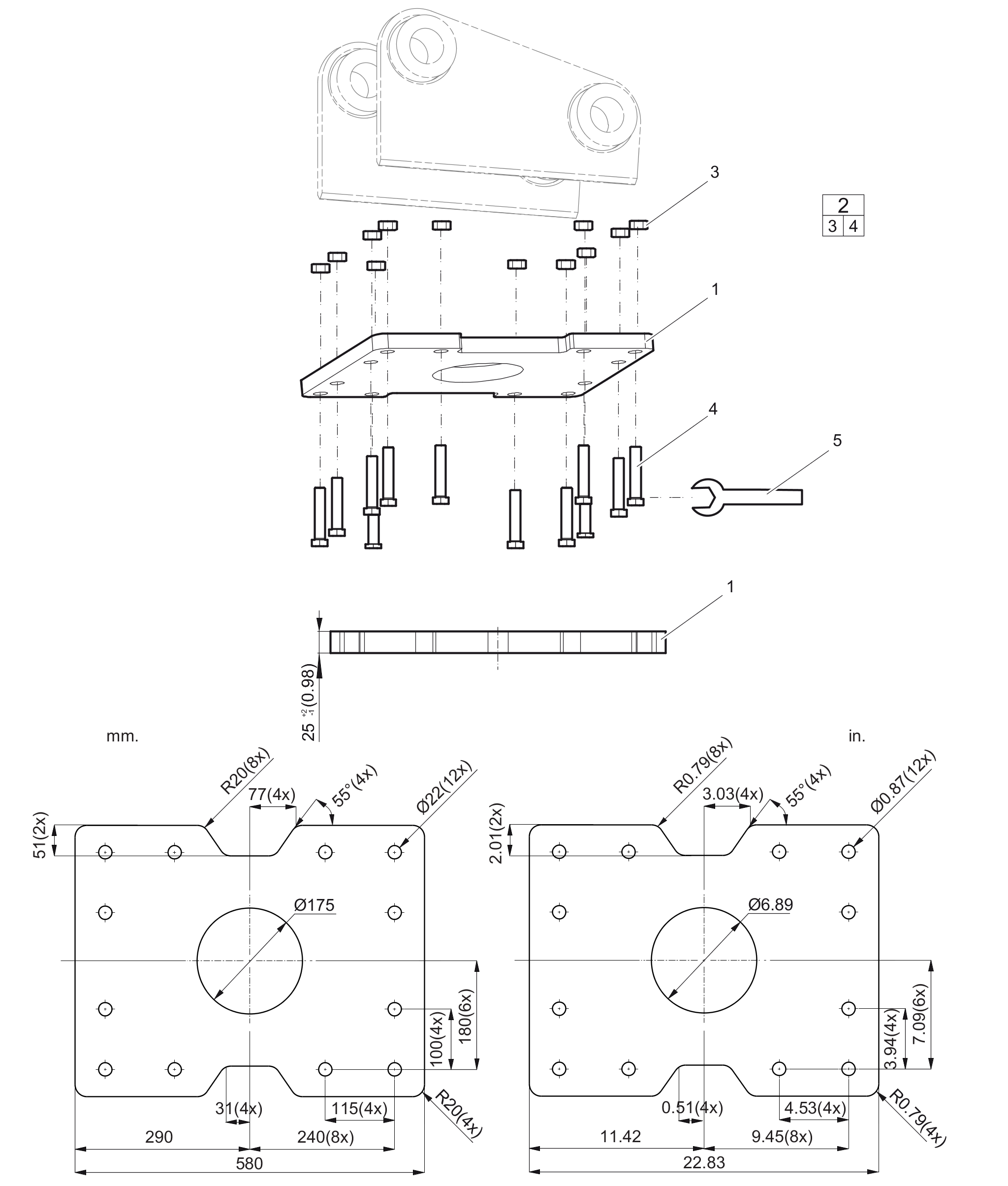 BASE PLATE with through borings