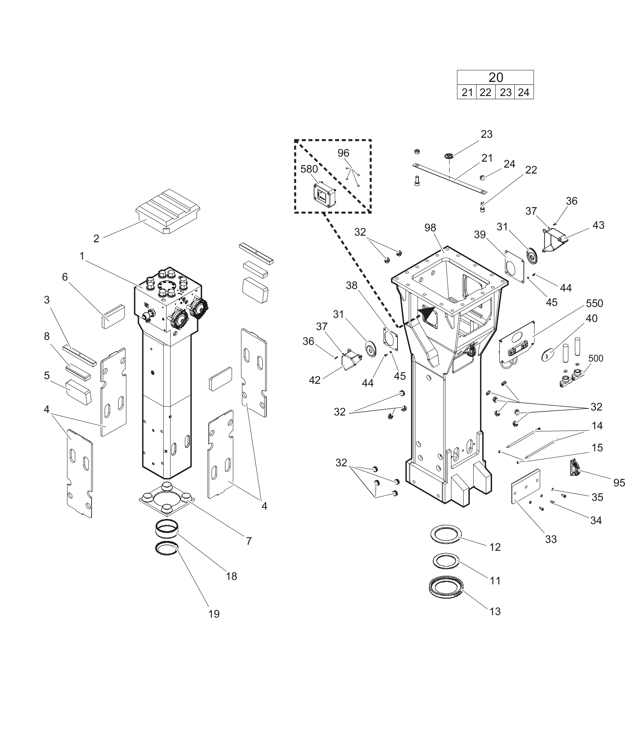 | - | Percussion unit | 1 | see separate chapterB | steel see chapter Optional partsC | professional welding process necessaryD | with item 95 and 96E | only for hydraulic breakers without HATCONF | only for hydraulic breakers with HATCON / see separate chapter | |||