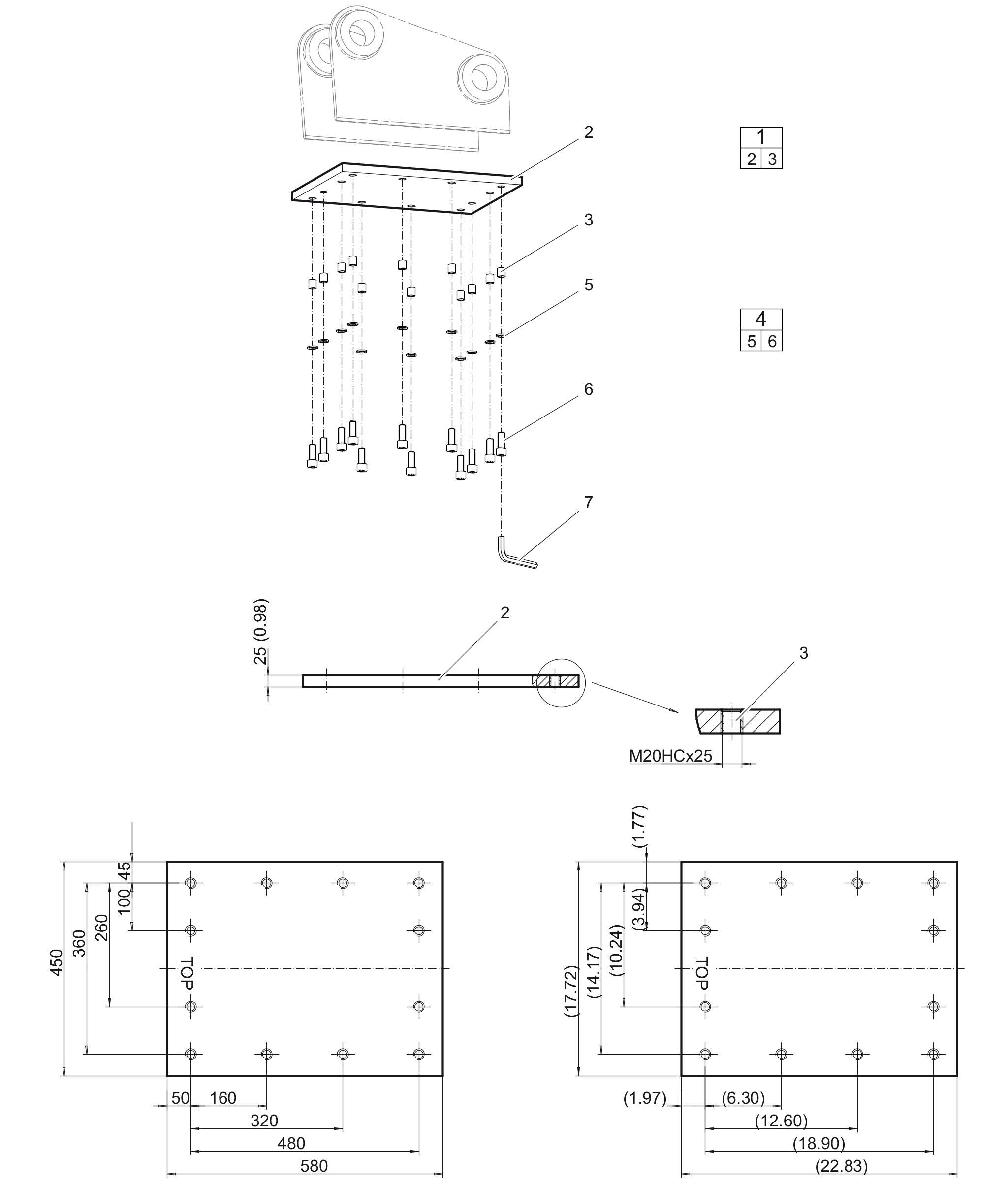 Base plate (8) BC 2100, MB 750, MB 1000, MG 800, HC 850, HC 920, CB 750, CB 950, CC 650, CC 950, DC 600, DC 1000