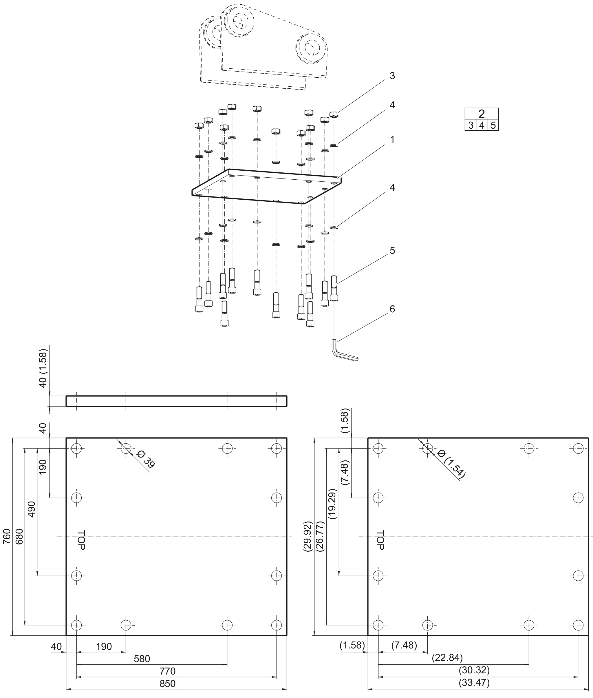 3363104725BASE PLATE WITH THROUGH BORINGS1material: EN10025-S355 J2G3