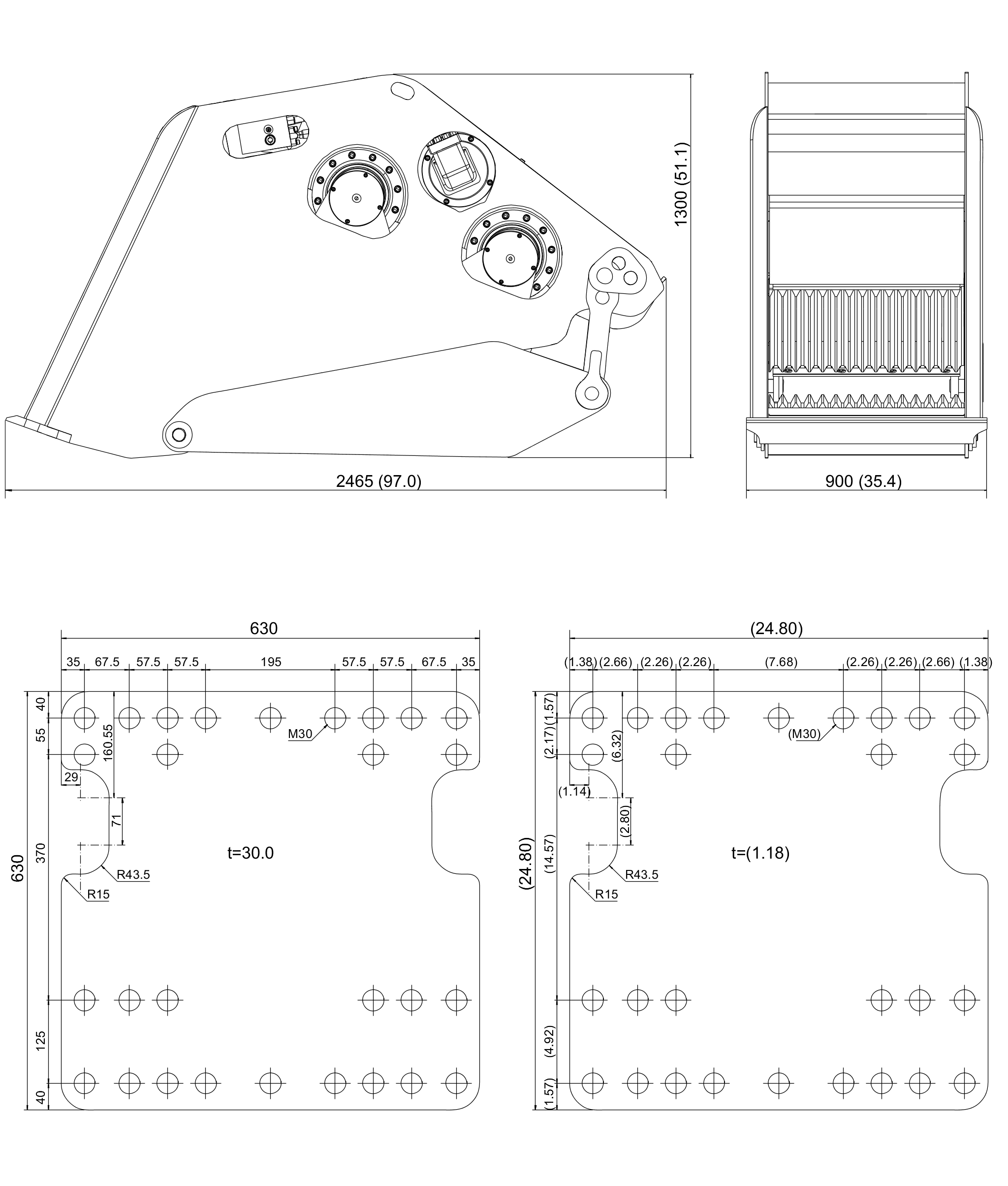 Dimensions without intermediate plate