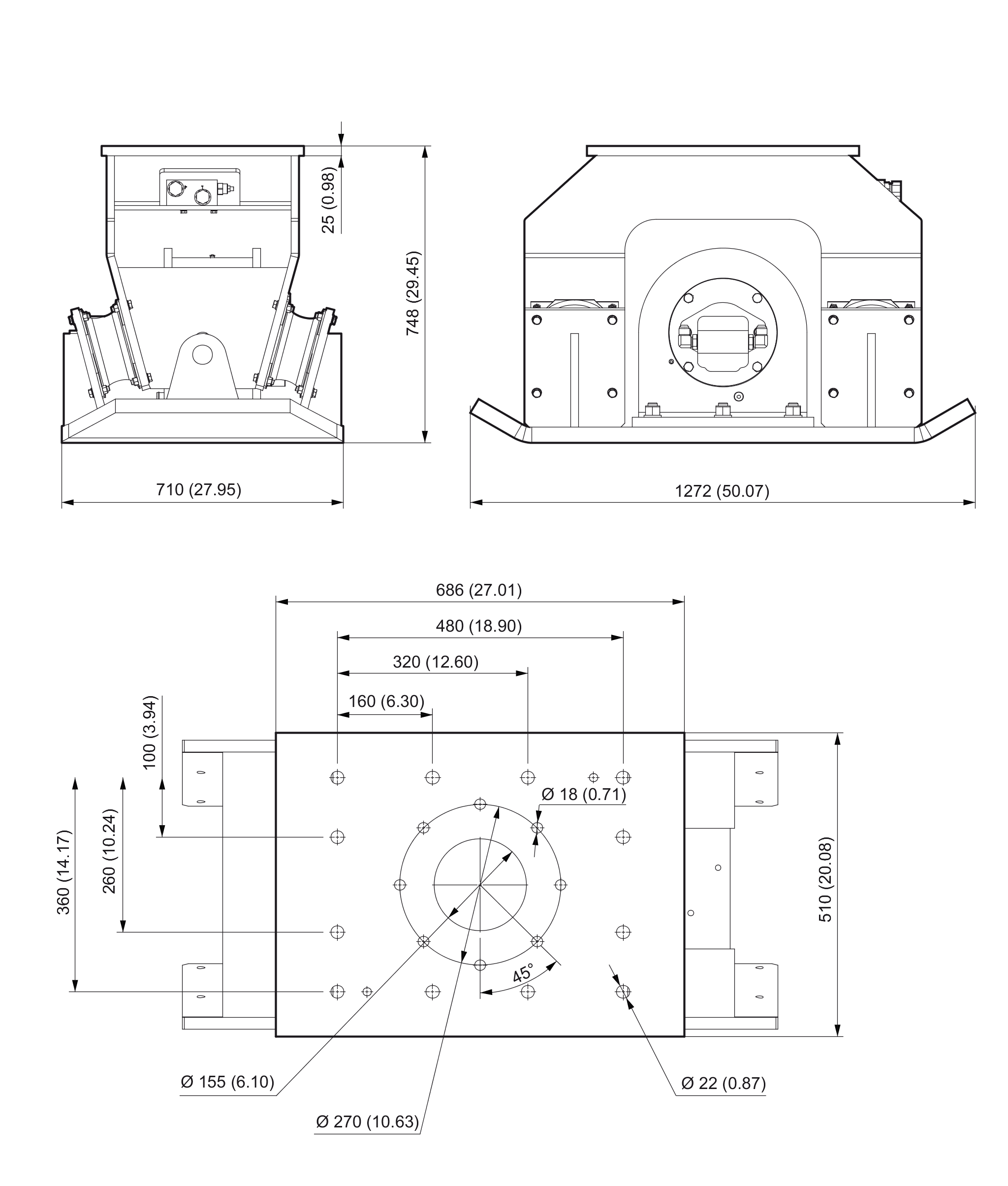 Dimensions HC 850 non rotating